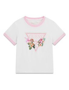GUESS Marškinėliai rožių spalva / tamsiai rožinė / juoda