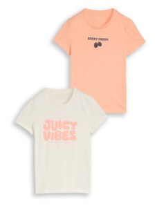 TOM TAILOR Marškinėliai šviesiai oranžinė / juoda / balta