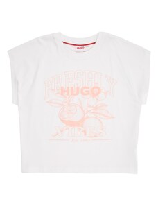 HUGO Marškinėliai pastelinė oranžinė / balta