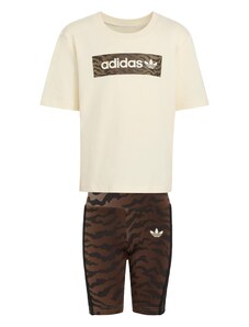 ADIDAS ORIGINALS Rinkinys 'AOP CYCLING SHORT TEE' tamsiai ruda / juoda / natūrali balta