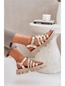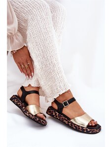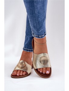 STEP IN STYLE Moteriškos basutės iš natūralios odos su auksiniu akcentu