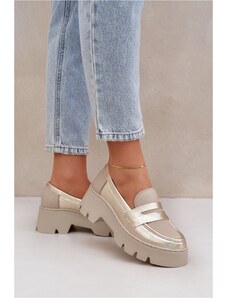 ZAZOO Aukso spalvos moteriški odiniai mokasinai su platforma ir leopardo raštu