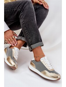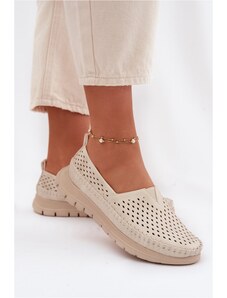ARTIKER Smėlio ir auksinės spalvos odiniai laisvalaikio bateliai moterims