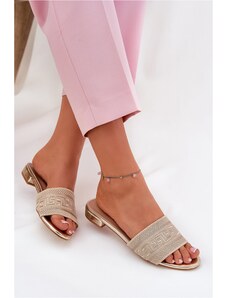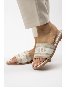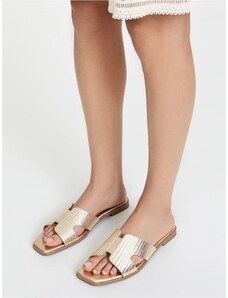 MARKA NIEZDEFINIOWANA Šlepetės auksinės su blizgučiais ant kamštinio pado Flotila