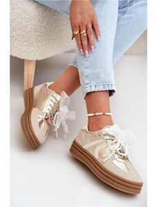 BOTO Moteriški platforminiai sportbačiai su dekoracijomis, smėlio spalvos auksiniai