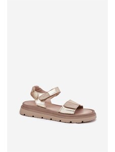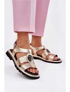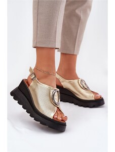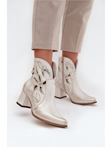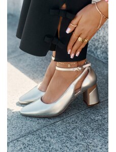 MACIEJKA Aukštakulniai odiniai bateliai moterims auksinės spalvos