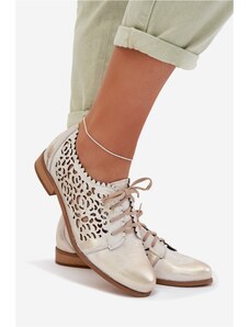 S.BARSKI Bateliai moterims iš perforuotos odos su atvirais priekiais auksiniai