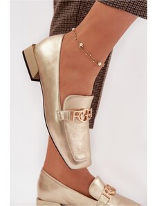 Moteriški mokasinai iš natūralios odos su auksiniu akcentu D&A