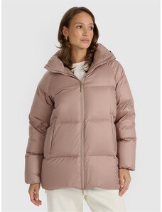 4F Moteriška striukė su natūralių pūkų kamšalu - smėlio spalvos