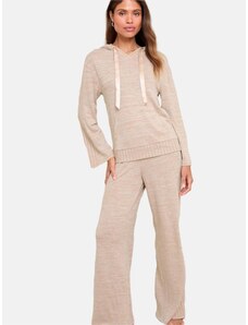 KESI WŁOSKI Velūrinis moteriškas smėlio spalvos treningas su gobtuvu ir plačiomis kelnėmis