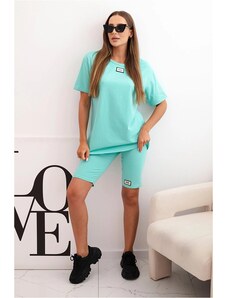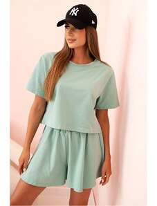 KESI WŁOSKI Pižama moterims medvilninė su šortais mėtų spalvos