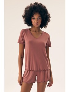 Apvalia iškirpte moteriškos pižamos su šortais