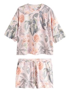 Next Pižama su šortais 'Kew' kaštoninė spalva / pilka / tamsiai žalia / rožių spalva