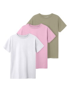 TWO SOON Marškinėliai alyvuogių spalva / šviesiai rožinė / balta