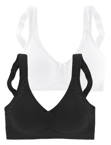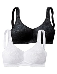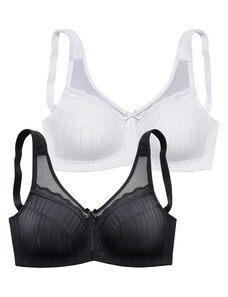 Kaušelių tipas: minkšti / lygūs kaušeliai, visiškai uždari kaušeliai; Pagrindinės medžiagos tipas: įprasto pločio petnešėlės; Liemenėlės / bikinio tipas: Mažinanti; Akinių rėmėlis: Be liemenėlės lankelio; Užsegimo rūšis: Kabliukas; Medžiaga: plonas trikotažas; Raštas: Vienspalvis; Papildomai: Reguliuojamos petnešėlės, Minkšta tekstūra; Spalvos pakuotėje: pakuotėje įvairios spalvos; Pakuotė: 2 vnt. pakuotė. R-0.2. P-0.3913353523. RQ-0.57