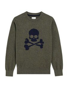 Scalpers Megztinis 'Skull Intarsia' tamsiai mėlyna jūros spalva / alyvuogių spalva