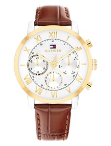 TOMMY HILFIGER Analoginis (įprasto dizaino) laikrodis 'OXFORD' ruda / auksas / balta