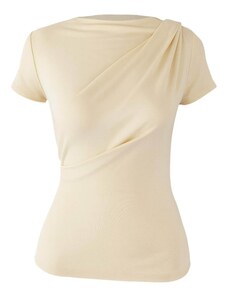 Dizainas: Dygsniuotas apvadas / kraštas, Asimetrinis apvadas; Medžiaga: plonas trikotažas; Iškirptė: Laivelio formos iškirptė; Raštas: Vienspalvis; Detalės: Drapiruotas / rauktas; Papildomai: To paties tono atspalvių siūlės, Minkšta tekstūra; Pritaikomumas: Siauras prigludimas; Rankovės ilgis: ketvirčio ilgio rankovės; Ilgis: Normalaus ilgio. R-0.3. P-0.3423433436. RQ-0.46