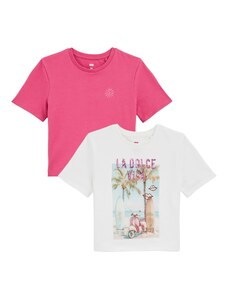 WE Fashion Marškinėliai rožių spalva / raudona / balta
